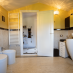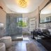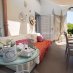 no rés do chão, sala de estar em open space com kitchenette aberta, um quarto de casal e um quarto de solteiro, escritório, casa de banho de serviço e casa de banho principal com duche no andar de cima, área de estar em loft com zona de relaxamento, quarto principal, casa de banho com banheira e roupeiro Os acabamentos são todos em mármore precioso, entre os quais podemos reconhecer “breccia toscana“ na casa de banho do rés do chão, “trambiserra“ na cozinha, “bianco gioia“ na escada que conduz ao piso superior e os pavimentos são “bianco gioia com incrustações de collemendina vermelha“.